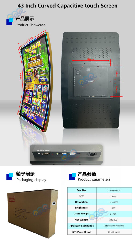 Slot 43 Inch Curved Capacitive Touch Screen with LED Light