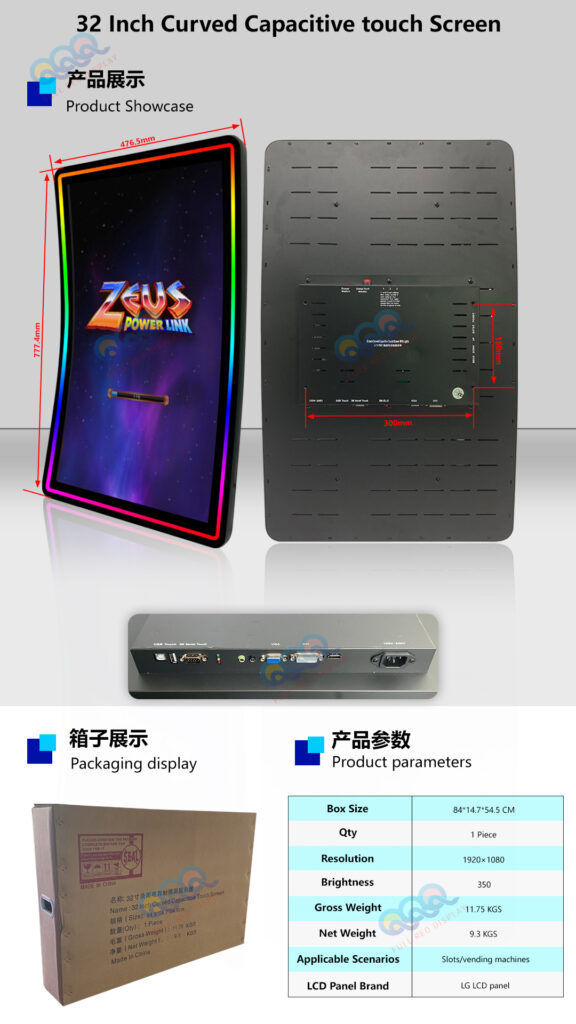 32 Inch Capacitive Curved Touch Screen 3M Serial RS232 USB Fire Link Mega Link Gaming Monitor