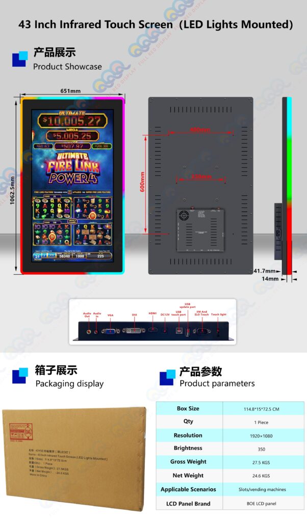 | Product Name | 43 Inch Infrared Monitor for Casino Machine |