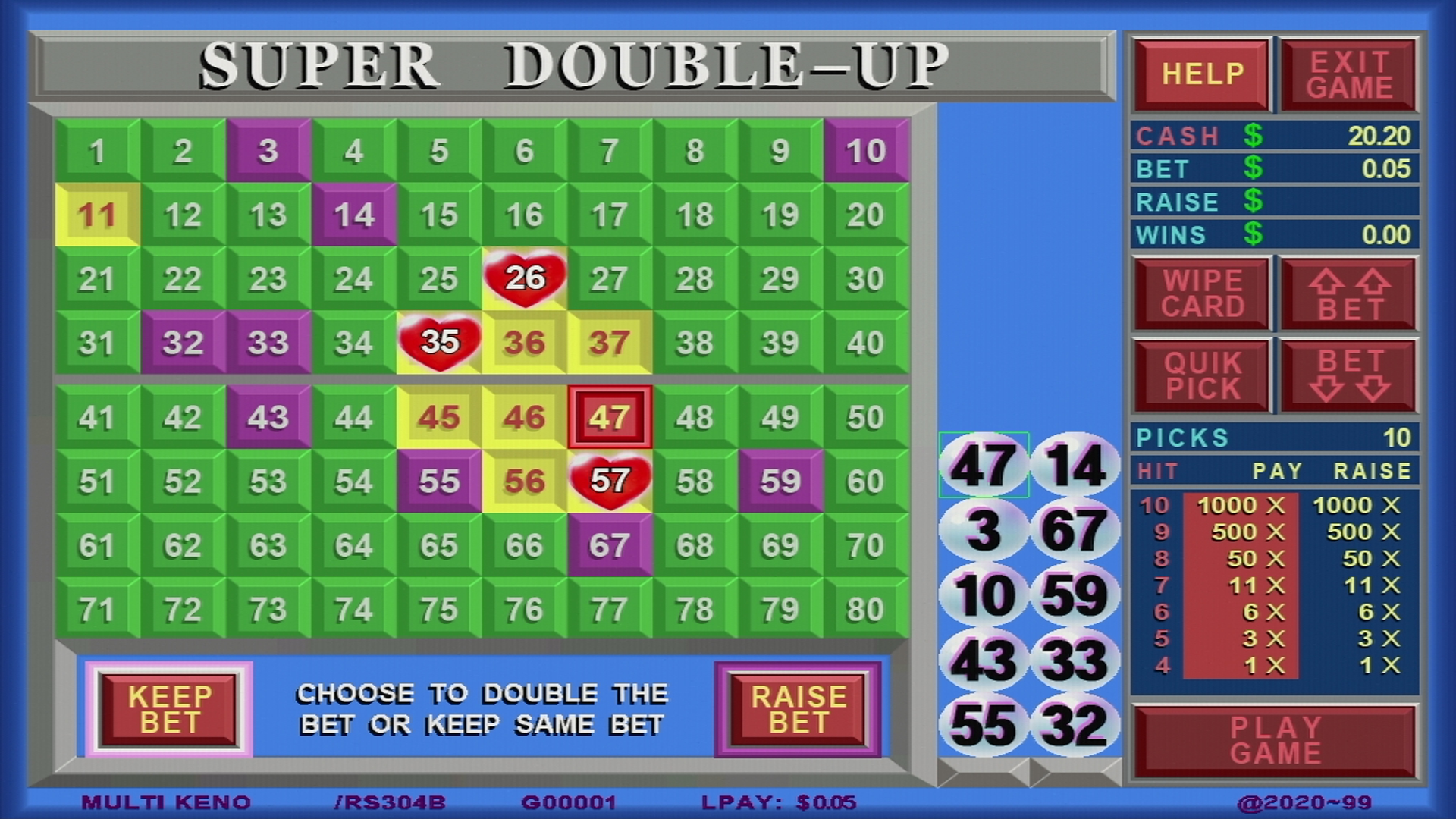 This game board can be used on many sizes of monitor.such as 19″,22″,23.6″,etc. texas keno, It’s a very classic game , and there are two different versions of it, one is texas keno, one is texas keno four heart.